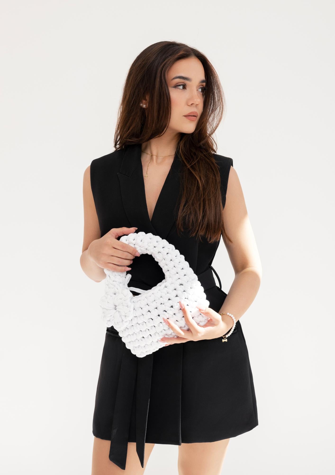 - Ezt a táskát crossbody táskaként is lehet hordani, hogyha a rendelésedhez hozzáadsz láncot (a láncot kitudod választani a termékek menüben a "táska láncok" opció alatt). Ha viszont nem raksz külön a kosaradba láncot, akkor csak kézitáskaként tudod hordani.